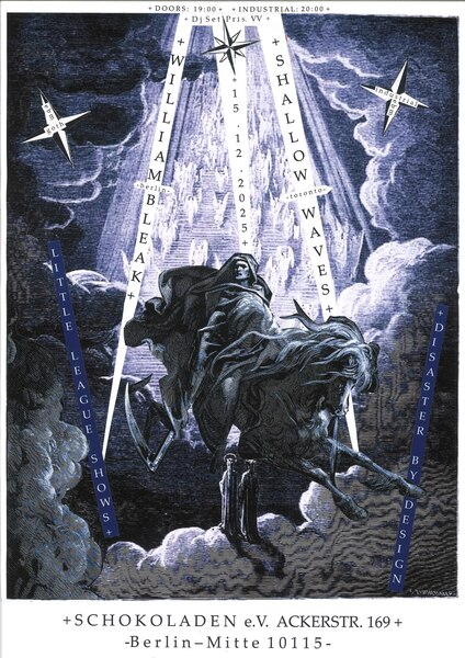 WILLIAM BLEAK is a Post Punk/Cold Wave Band from Berlin, Germany, combining pumping electronic rhythms with manic guitars and guttural baselines into a grotesque yet celebratory sound.