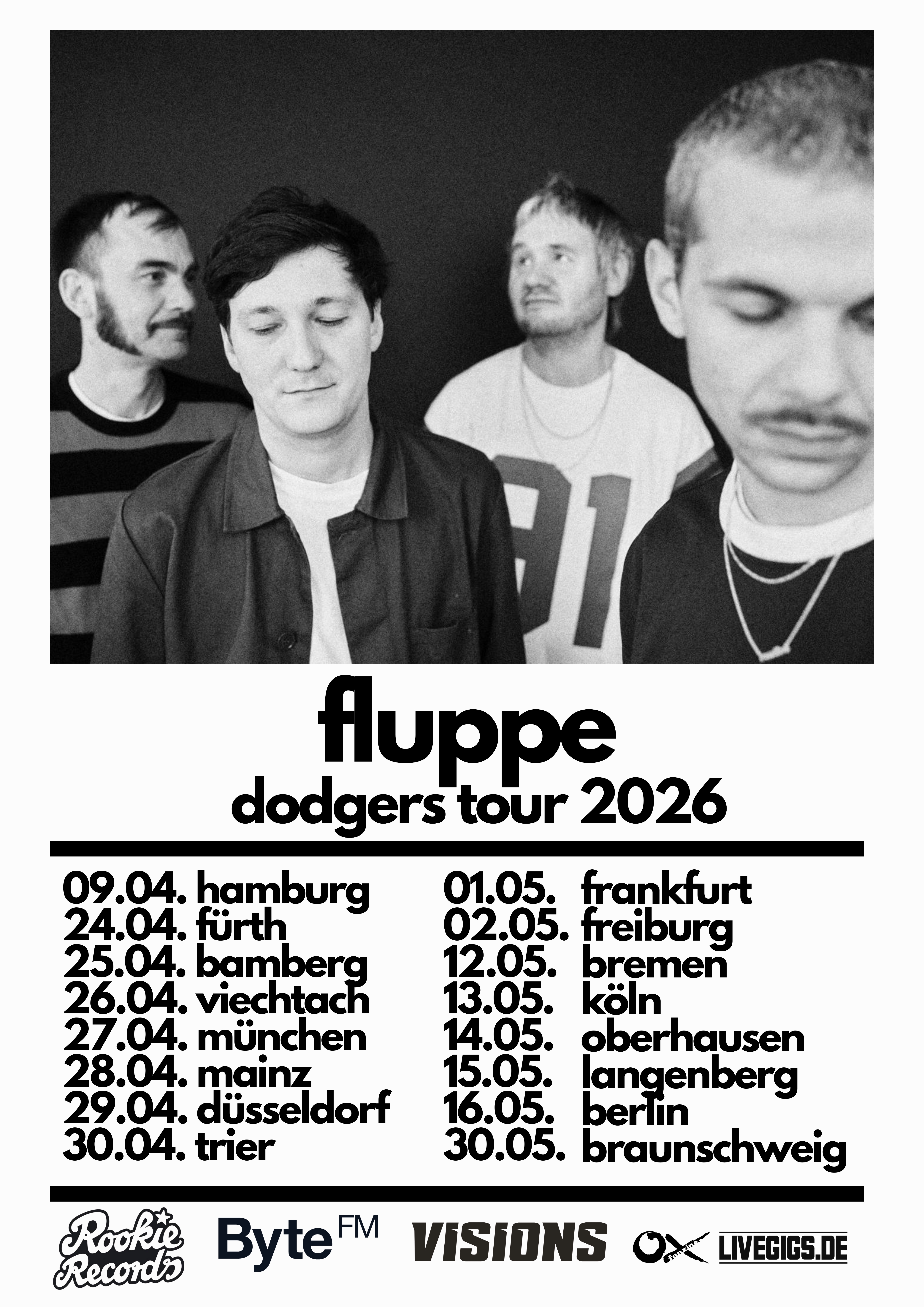 fluppe sind der Stengel, der in deinem Vorgarten nichts verloren hat, der Vogelschiss auf deinem Volkswagen. fluppe sind ein Post-Punk-Quarte3 aus der Hansestadt Hamburg, das ebenfalls ein Faible für Pop und Shoegaze hat. Der ehemalige Intro Chef Daniel Koch (u.a. Musikexpress, Diffus) schreibt: „(…) musikalisch kommen einem eher diese räudig-poetschen Post-Punk-Bands wie shame, Protomartyr oder auch IDLES in den Sinn.“ Kombiniert man dies mit der für die Hamburger Schule typischen Haltung und Skepsis gegenüber den bestehenden Verhältnissen, so hat man in etwa die Koordinaten zusammen. Mehr braucht man nicht.