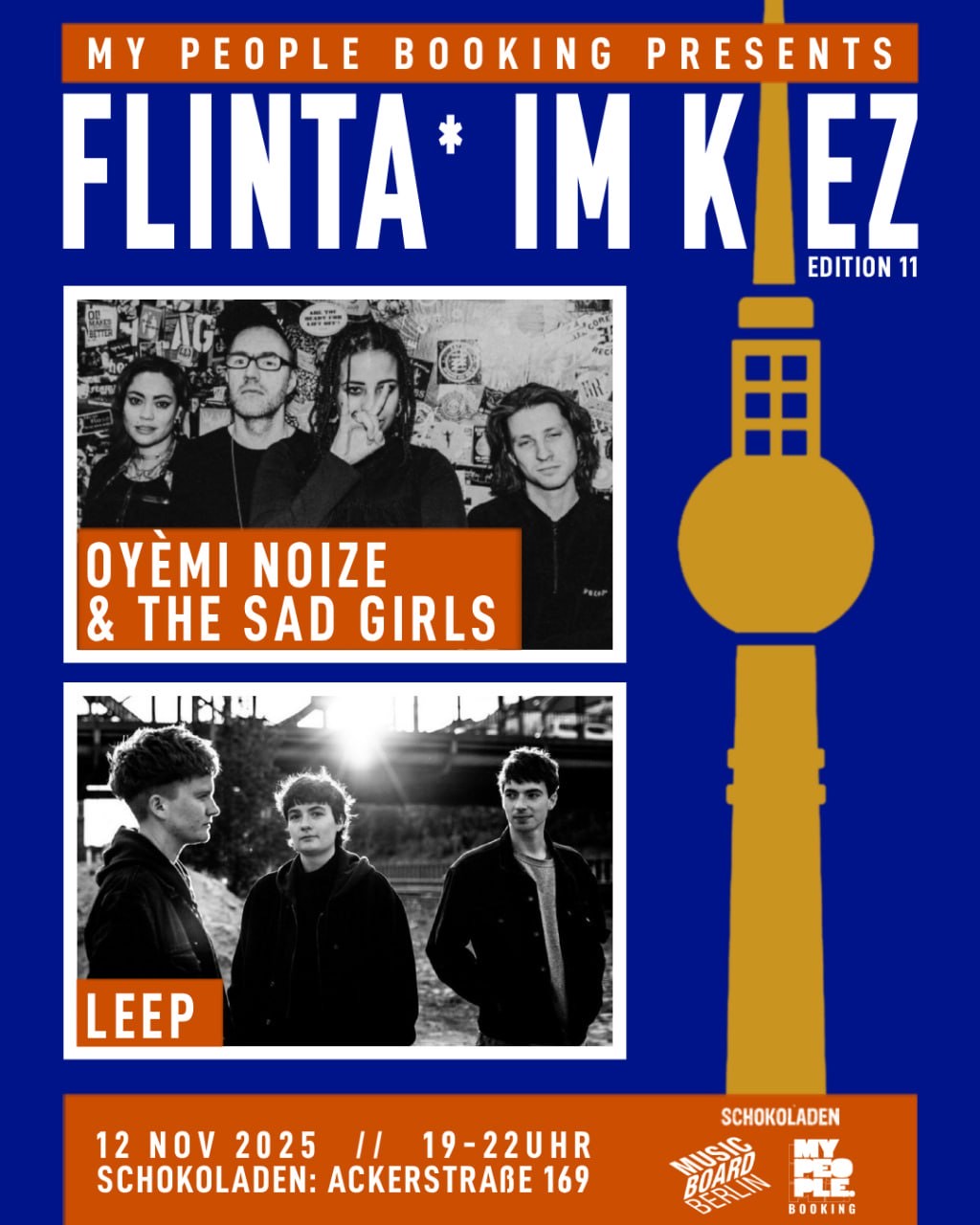 Tickets für FLINTA IM KIEZ #11 w/ Oyèmi Noize & The Sad Girls + Leep 12.11.25 in Berlin, Schokoladen