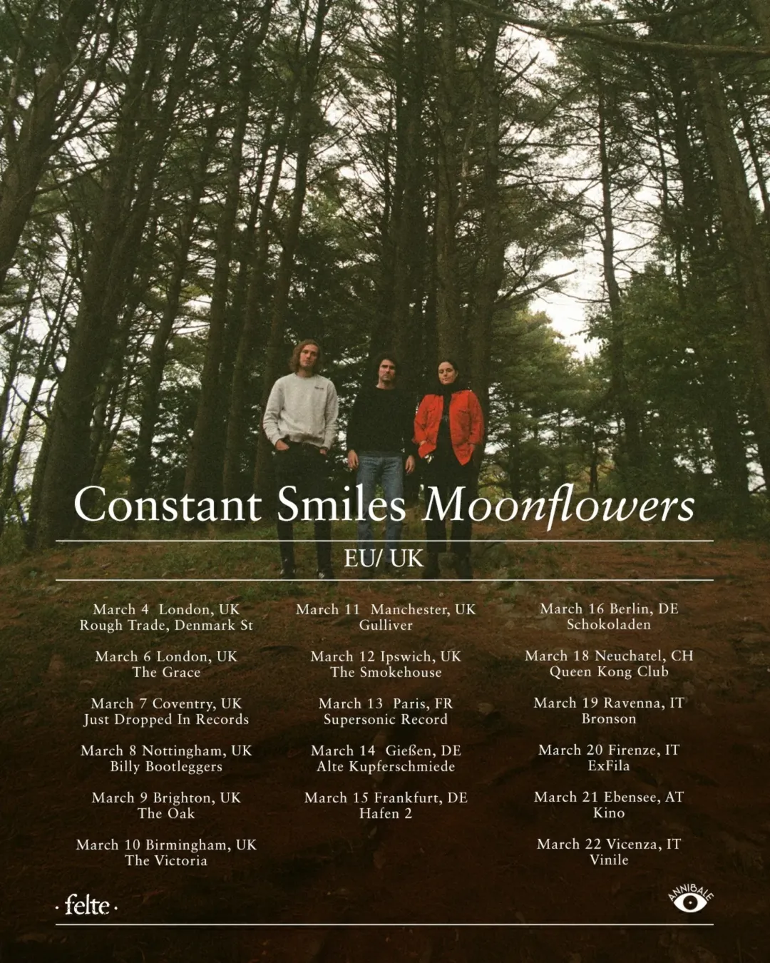 Moonflowers is the clearest possible view of something that took years to form, yet feels naturally like an introduction. The music is cared for but not belabored, and this fits perfectly with songs about the feelings that happen before you have time to think. In this fully arrived form, Constant Smiles taps into something instinctive, an atmosphere of stillness with microscopic parts that never stop moving, and songs that are nearly transparent but still somehow heavier than a mountain.