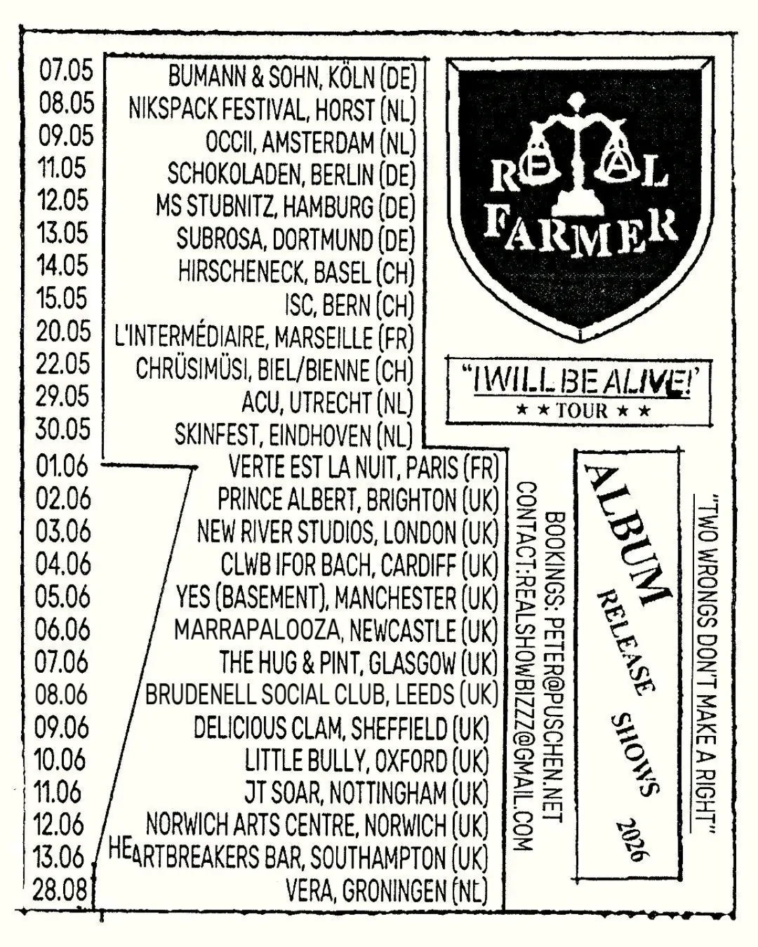 REAL FARMER are fast making a name for themselves in alternative music scenes all over Europe thanks to their energetic blend of DIY punk, angular art-rock and gritty authenticity. In 2025 they supported the likes of Babyshambles, Protomartyr and The Libertines and played The Great Escape, Primavera a la Ciutat and Pitchfork Paris.