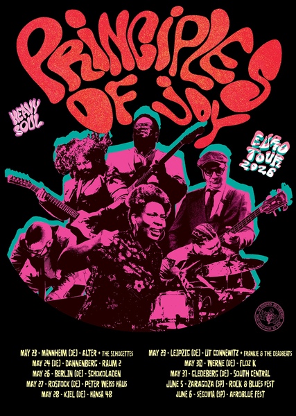 Principles Of Joy is one of Europe's hottest current Soul acts, emerging from Q-Sounds Recordings—France's premier Soul label since 2009. Formed in 2017, the band blends deep Southern Soul and Northern Soul floor-fillers, led by Ludo Bors (keys, flute, composer) and fronted by powerhouse vocalist Rachel Yarabou.Their discography includes a 7inch (2018) and two albums (2019, 2022), featured on major radio shows like BBC6 (Carl Craig) and FIP, plus a French TV appearance (2019). After a sold-out 2022 European tour (with Carlton Jumel Smith) and a headlining set at Cologne's Freedom Sounds Festival (2023), their third album drops March 2024—already hailed as a contender for Soul album of the decade. With high-energy performances and a premium repertoire, Principles Of Joy stands as one of the most electrifying acts on the global contemporary Soul scene.